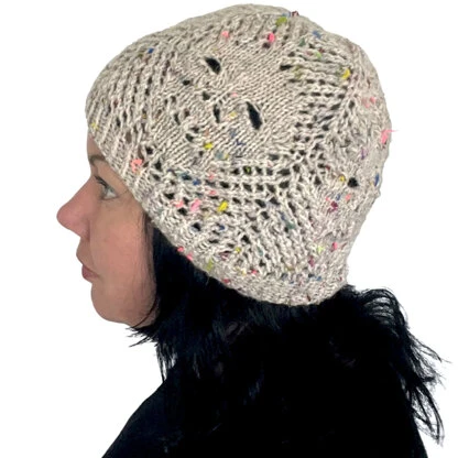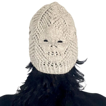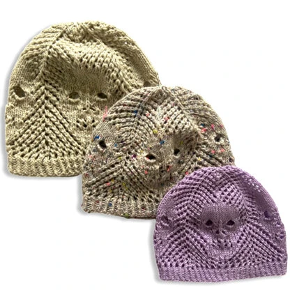 AMBAH’s Calvaria Hat is a fun accessory that features elegant lace with a ghostly twist that is a perfect Halloween project for keeping you warm and cozy. Complete the set with the matching scarf or cowl by purchasing it here. The hat is knit in the round seamlessly from the brim to the crown. Yarn and needle size will determine each size. The lace patterns are charted and written out.