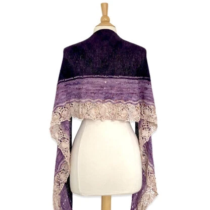 of moon lace or ocean wave lace to finish the wrap. The shawl is knit flat from