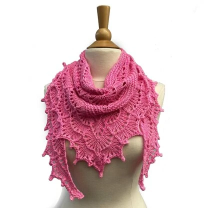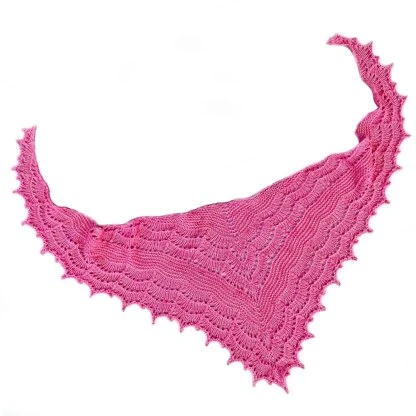 Sherbet Fizz from AMBAH is a stunning women’s shawl knit in a fingering or DK weight yarn. This lightweight wrap will be a delight to throw on for a touch of warmth on cooler days. Sherbet Fizz has simple lace alternating with garter stitch rows to keep it interesting without being too challenging. The shawl is knit flat in one piece from the top down seamlessly. The lace pattern is charted and written out.