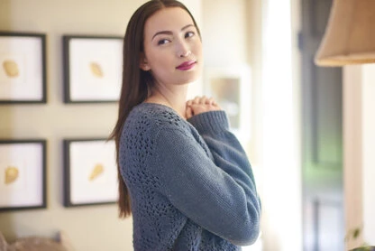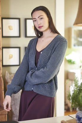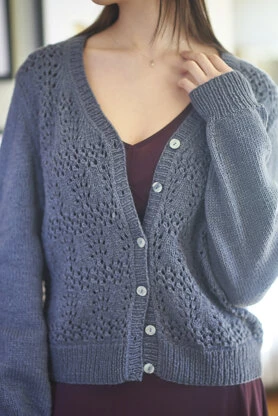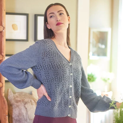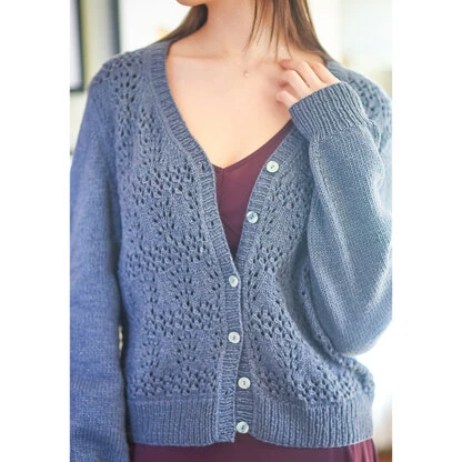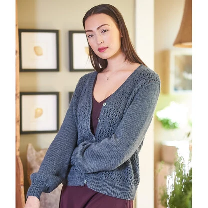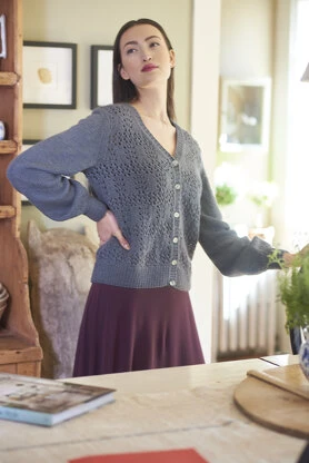 Emmi designed by Amy Christoffers is a knitted women’s v-neck cardigan with a