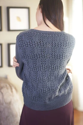 from the bottom up in one piece with an allover lace pattern. The sleeves are