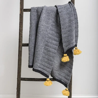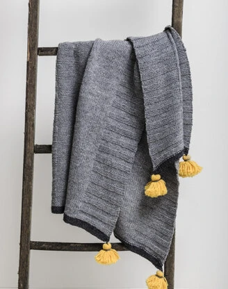 Enjoy nestling on the couch this winter with the Blue Sky Fibers Scandia Throw, a cozy blanket that features basic texture patterns and a touch of color in the form of four charming tassels. This simple blanket is knit in Blue Sky Fibers Woolstok, a lofty worsted weight yarn that offers plenty of color options.