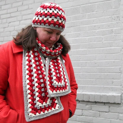 Striscia by ChickenBetty is a cute and colorful crochet pattern for a hat and matching scarf. The scarf is worked lengthwise from the center out, giving you the classic granny square shape at the ends. The hat is worked in the round from the brim up with evenly spaced decreases at the crown.