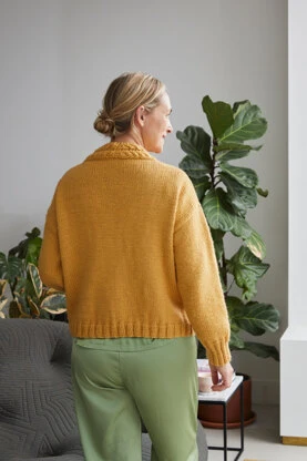 Yarn Requirements: 13 (15, 16, 18, 19) balls Debbie Bliss Cashmerino Chunky (55% Merino Wool/ 33% Acrylic/ 12% Cashmere; 50g/71yds) shown in 010 Gold
