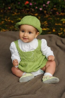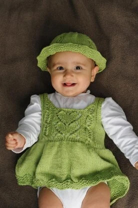 Design has both a hat and an adorable baby dress included. The hat is worked in