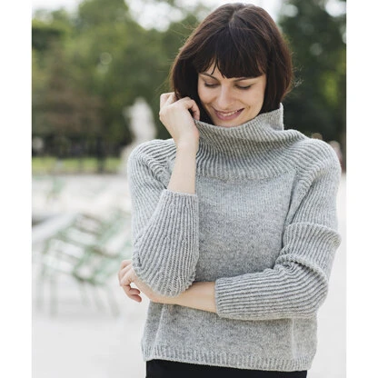 pullover with an oversize collar. This stunning yet simple sweater is knit in