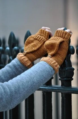 Fred and Ginger Flip-Tops from designer Laura Chau are a fun and quick project which integrates many of the design features of Fred and Ginger Cardigan. These mittens are worked with a tidy knit-in hem, twisted ribbing, seamlessly picked up flip-tops, and an innovative integrated button loop. The ruffed edging can be worked in a coordinating or contrasting color, and it’s great for using up leftover lace weight yarn!