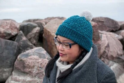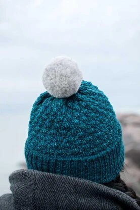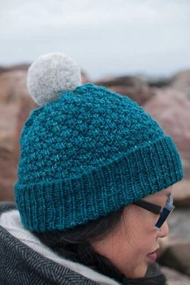 are worked over just a few rows for a gathered top that’s perfect for a fluffy pompom. This lovely hat is knit in the round from the bottom up