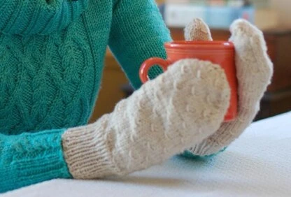 hands warm all winter. Dashes of the diagonal scallop stitch pattern give these