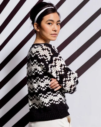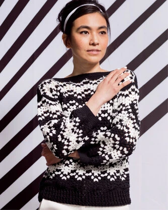The MillaMia Movement Jumper is a beautiful crocheted pullover that uses a two color stripe pattern to create an almost stranded colorwork effect. MillaMia Naturally Soft Cotton is a smooth, machine-washable cotton yarn with crisp stitch definition that works up beautifully into garments and accessories. The Movement Jumper is crocheted flat in pieces from the bottom up and seamed with crocheted-on trims. Choose contrasting colors for a sharp look or tonal colors for a more subtle one. Enjoy adding this versatile boat-neck pullover to your wardrobe for a unique yet stylish option. Pattern uses UK crochet terminology with a key included with corresponding US terms. Crochet instructions are written out only.