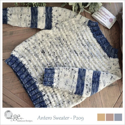 The P209 Antero Sweater from OGE Knitwear Designs is a pullover for toddlers through tweens that’s both cute and comfortable. With options for a single color version and one with sporty stripes and contrasting color trims, there’s bound to be an option that works for a special kid in your life! This seamless project is knit from the top down with increases shaping the saddle shoulders and sleeves and an allover texture pattern on the body. Fresh, fun, and fully customizable for any kid’s current favorite colors, the Antero Sweater is a perfect choice for your next project!