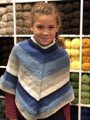 Keep your little one warm in this delightfully colorful Girl’s Poncho from Plymouth Yarn. This accessory is knit in the round from the top down in one piece. Knit in Plymouth Yarns Hot Cakes, a machine-washable, colorful blend of acrylic and wool worsted weight yarn.