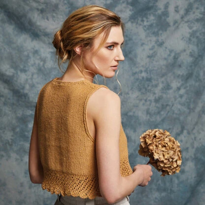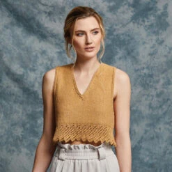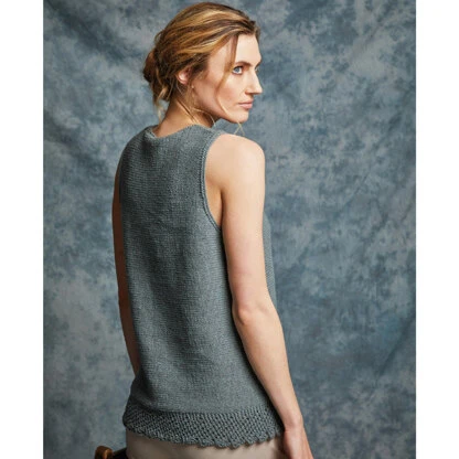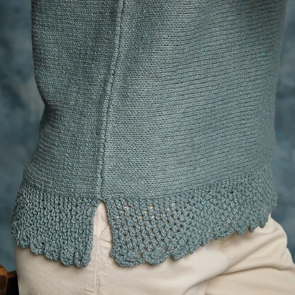 sleeveless pullover knit sideways with a lovely lace border at the hem knit in