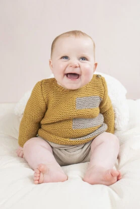 Rowan Fern from Bloom 3 is a stunning yet simple garter stitch baby’s pullover with graphic color-blocking intarsia bands, contrasting to one-half of the body knit in Cotton Wool. The sweater features set-in sleeves, a crew neckline, and button closures to one shoulder for ease. Fern is knit flat in pieces from the bottom up and then seamed. Cotton Wool by Rowan is a lovely and lightweight DK yarn. It comes in a variety of neutral and muted colors, perfect for modern knitting.