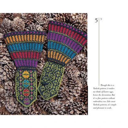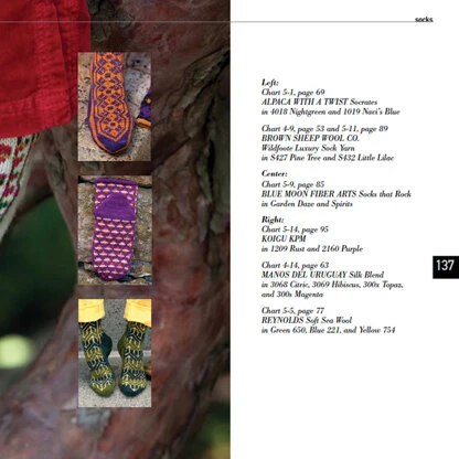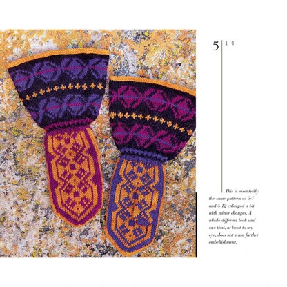 Anna Zilboorg’s classic, Magnificent Mittens, contained patterns for 42 gloriously color-patterned mittens—all knit from the fingertips to the wrist. In this expanded edition, Magnificent Mittens & Socks, you’ll discover how Anna Zilboorg’s toe-up, free-sole sock designs works with the mitten charts. With stranded patterning on the top of the foot and a plain sole, they are elastic, easily reinforced, and easily repaired. No longer are color-patterned socks too much work for too little wear; now your socks can be as magnificent as your mittens. Fully-illustrated, step-by-step instructions for the basic mitten method and for 2-color knitting as well as: