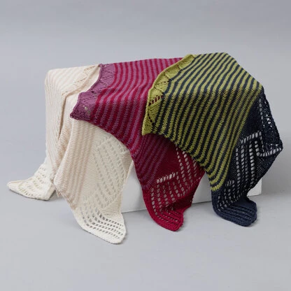 Shawls are the perfect piece to pull an outfit together and a great choice is the Victoria Shawl. The perfect combination between style and functionality. The lace borders and stripes throughout the stockinette section add interest and texture to this rectangle shawl. Choose your favorite colors and make the Victoria Shawl you’ll wear year-round!