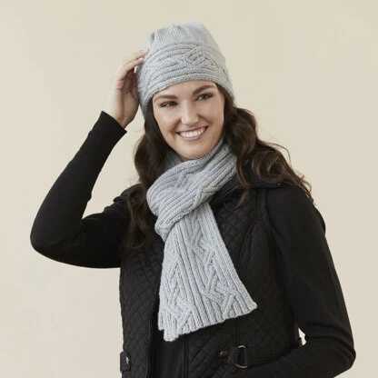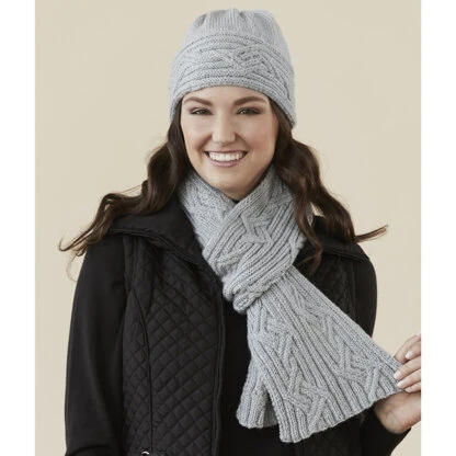 stunning accessory set knit in Whistler that showcases the fabulous Tilted Cube cable
