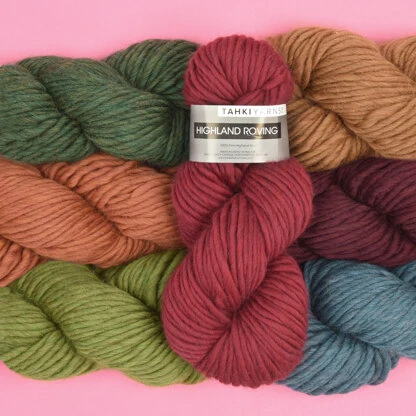 Highland Roving from Tahki Yarns is a single ply wool yarn available in a rainbow of beautiful colors. This super bulky yarn is perfect for sweaters, accessories, and blankets that work up fast and will keep you warm all winter.