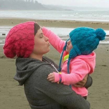 The Tofino Surfer toque can be a simple beanie or slouchy hat or you can add all the bells and whistles: earflaps, tassels, and pompoms – whatever your groove is. Knit a customized hat for everyone in your family!