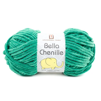 Velvety soft Universal Yarn Bella Chenille makes quick work of projects with its super bulky weight! This yarn is machine-washable and 100% polyester—an excellent choice for all kinds of baby garments, soft and snuggly accessories or even things like blankets and pillows.Â