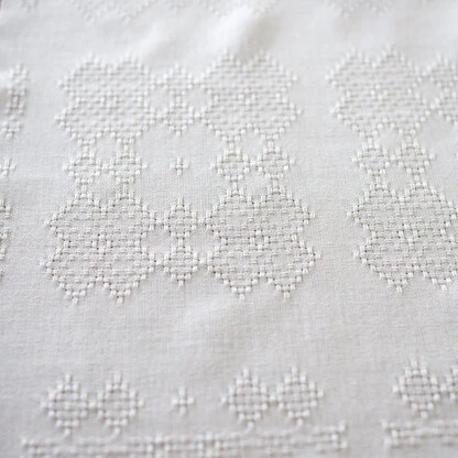 Weave Valley Yarns Lily Lace Runner designed by Barbara Elkins in delicate Huck Lace for special occasions or just to adorn a favorite bureau. The warp and weft floats pull the threads into graceful curves for an heirloom look. The easy-care cotton means it’s suitable for everyday use, too.