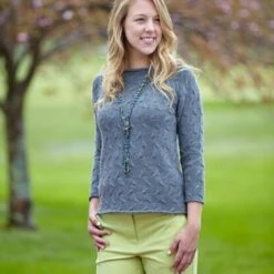 Featuring seamless top-down raglan shaping, a boat neckline, and a lightly cabled stitch pattern, the fun and easy Valley Yarns Nora Pullover is great for layering in cool weather. This sweater is knit in Valley Yarns Amherst, a soft 100% Merino wool yarn with fantastic stitch definition.