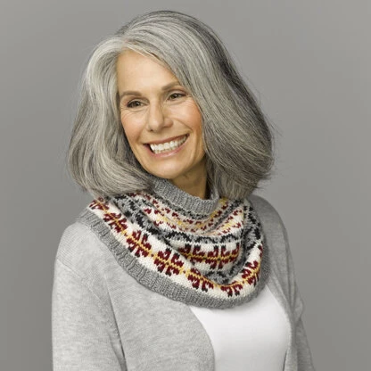 Teasel is a graphic colorwork cowl that is knit in the round in one piece using